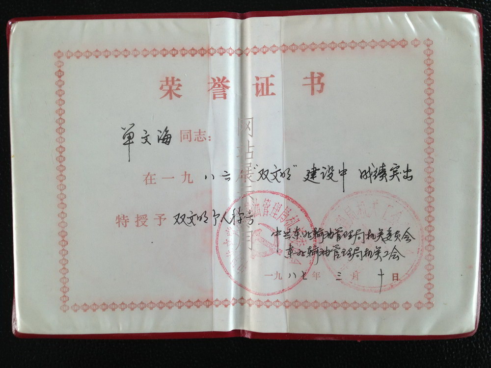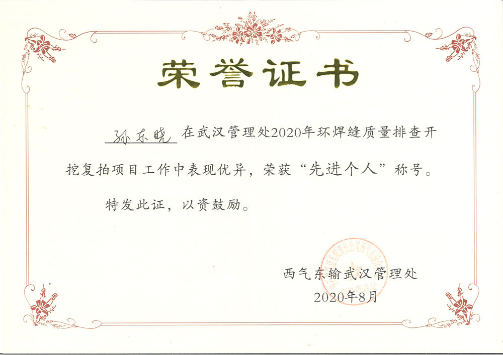 武汉管理处荣誉证书