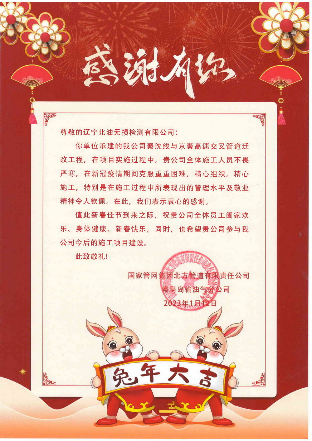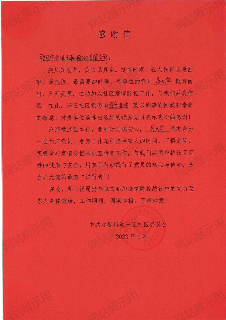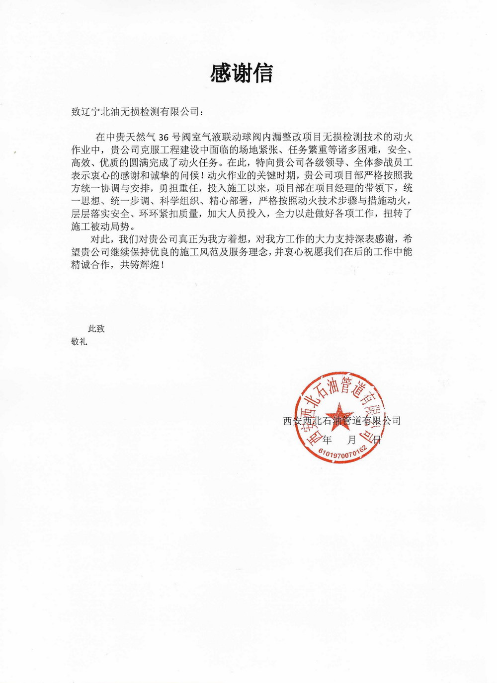 4西安西北石油管道有限公司感谢信