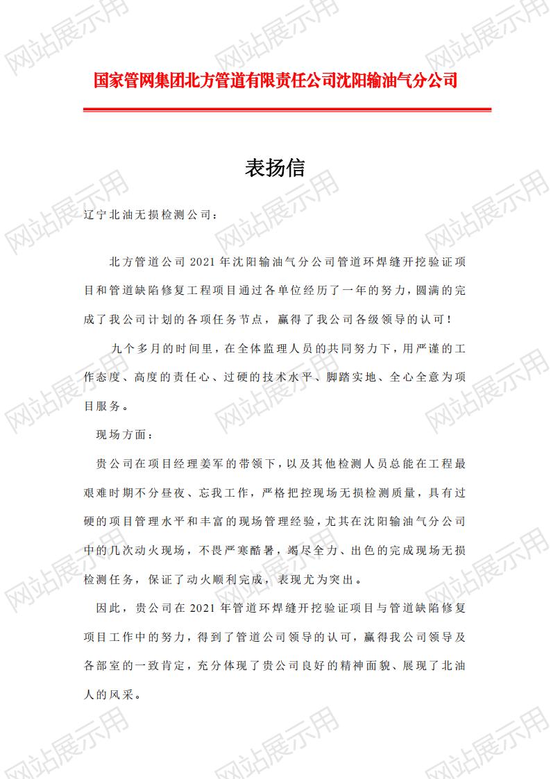 2国家管网集团北方管道有限责任公司沈阳输油气分公司表扬信_02