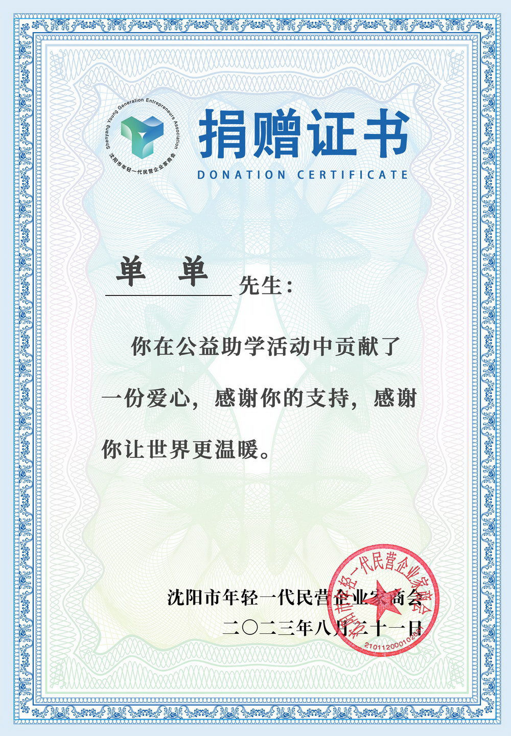 3公益助学捐赠证书(单单)