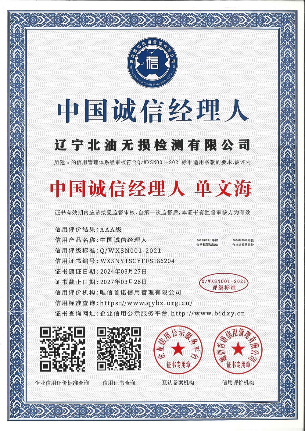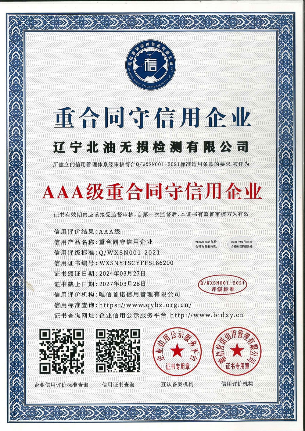 信用等级证书