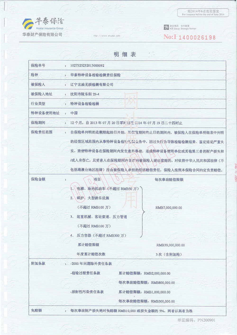 特种设备检验检测责任保险