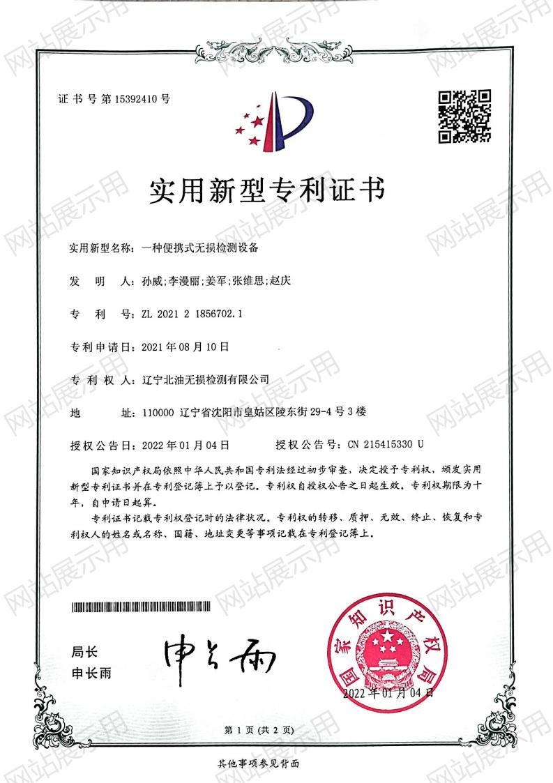 一种便携式无损检测设备-专利证书_02
