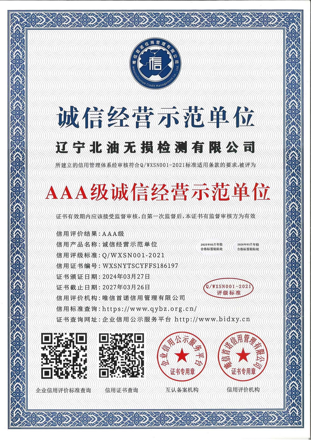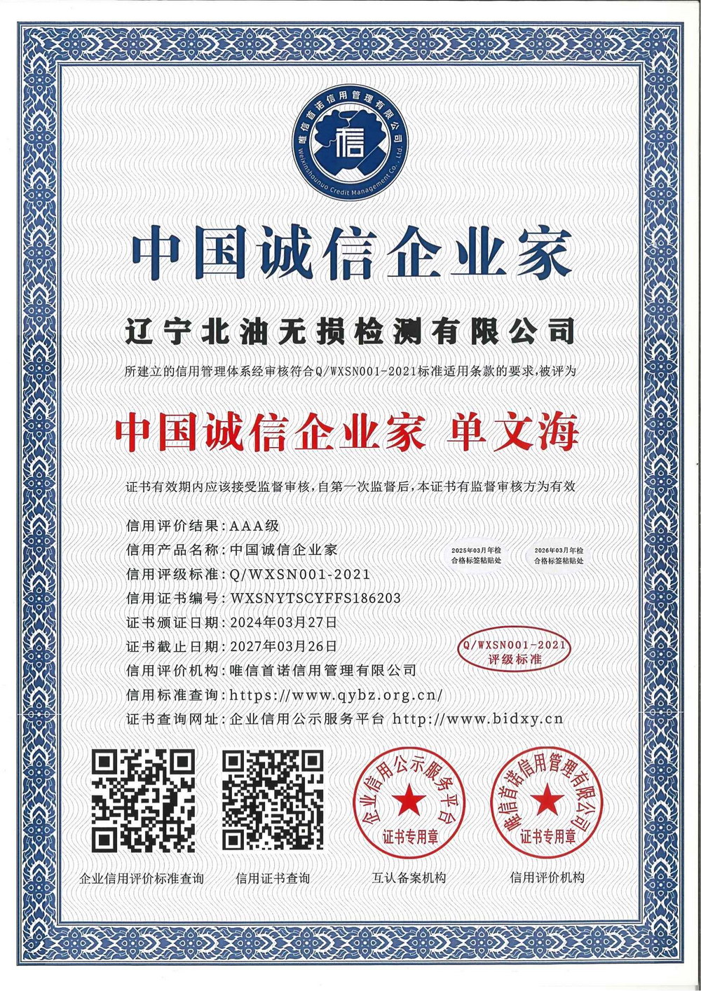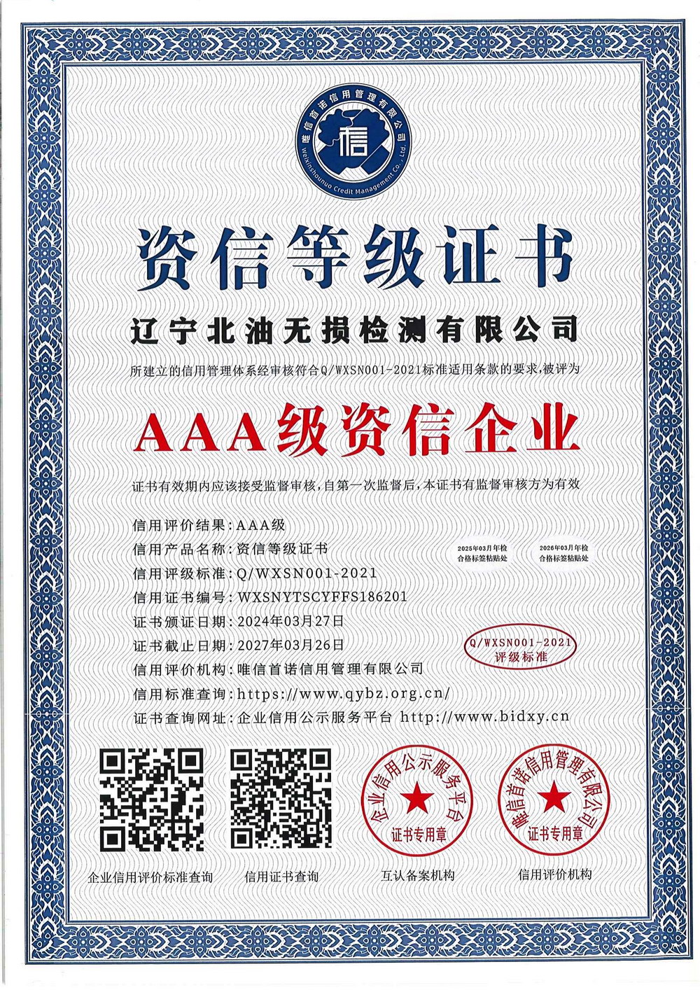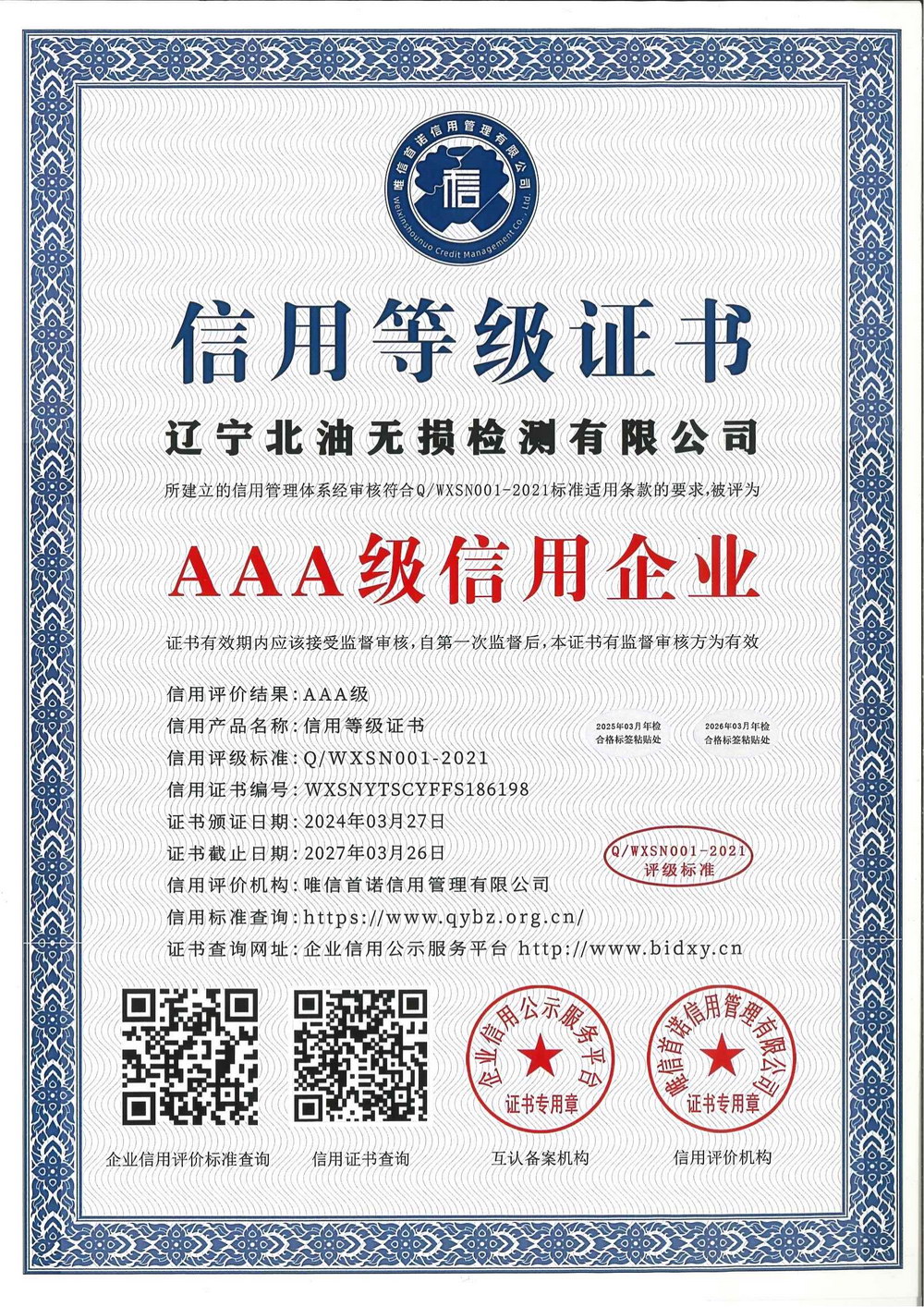 信用等级证书