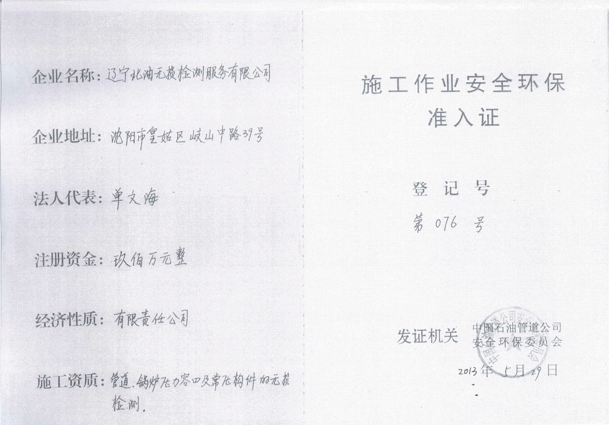 辽宁北油无损检测有限公司