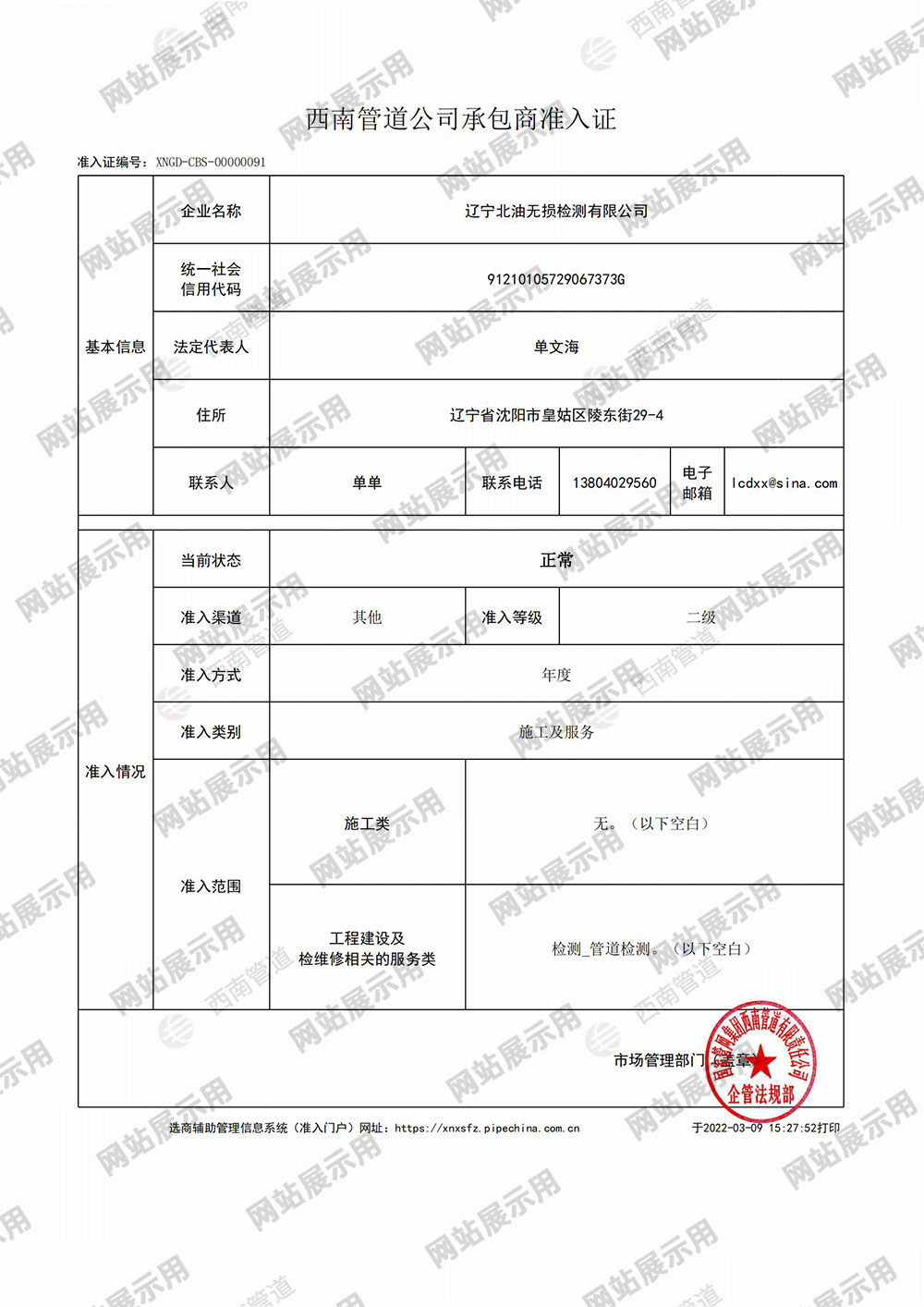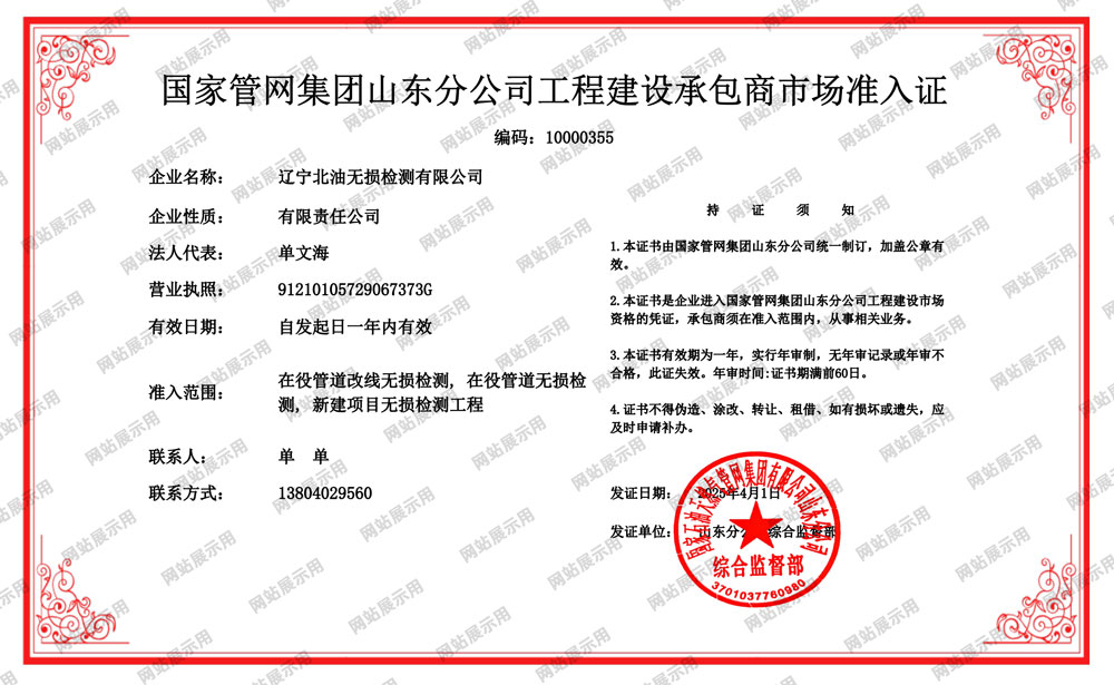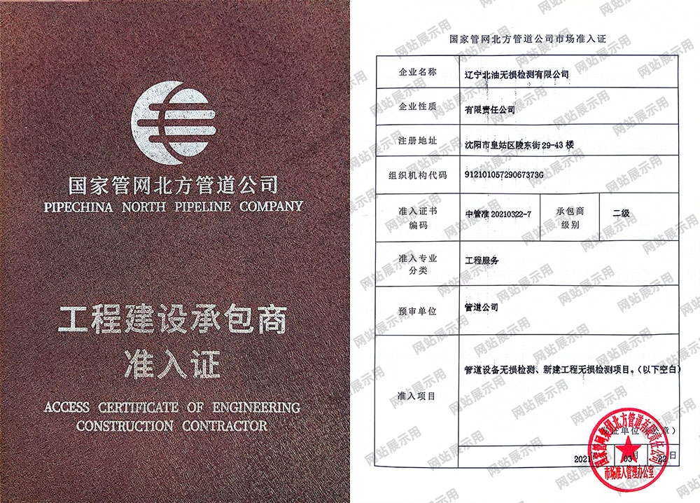 国家管网北方管道公司工程建设承包商准入证