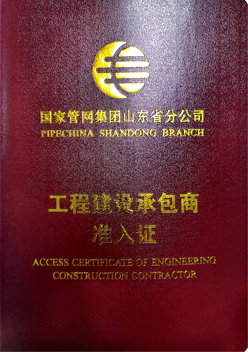 国家管网集团山东省分公司工程建设承包商准入证