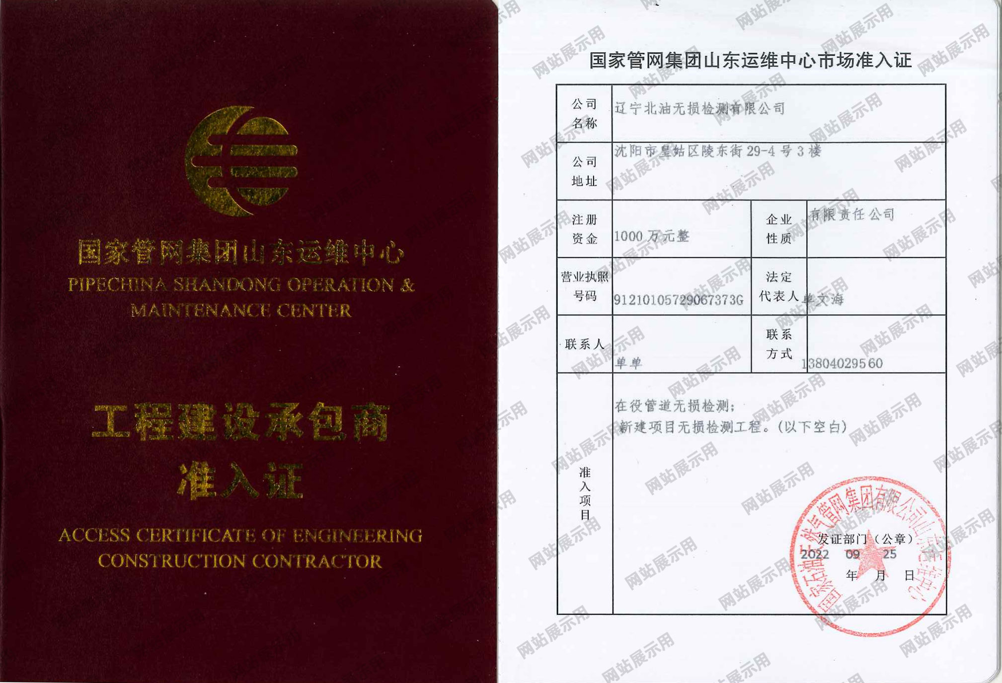国家管网集团山东运维中心工程建设承包商准入证